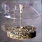 Window feeder with 6.5-inch diameter and .5-pound capacity. UV stabilized polycarbonate - won t yellow with age dependably durable. Sloped cover - overhangs dish and prevents runoff of rain into dish. Open construction - clear view of birds on the feeder. 3 high quality suction cups - hold feeder securely. Curved rim - makes perching easy. Deep dish - holds two cups of seed suet fruit or mealworms. Drainage holes - eliminate water from dish.