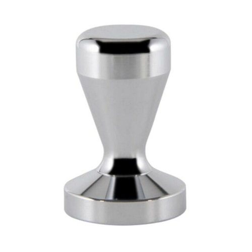 Handmade stainless steel coffee tamper available in 49mm, 51mm, and 57.5mm sizes, featuring a convex base for optimal espresso preparation.