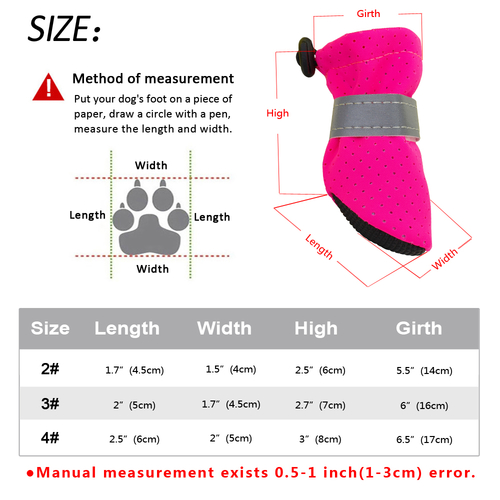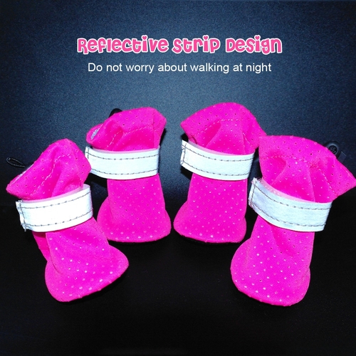 Type: Dogs Material: PU Color: Blue, Pink Type: Dog Shoes boots Feature: Reflective, Breathable , Non-slip Season: Spring/Summer/Autumn Packed: 4pcs/lot Applicable for: Small medium puppy dogs cats, chihuahua