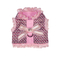 Modern harness with bow, rhinestones, and lace trimmings. Tweed shell with pink lining. Velcro closures. 50% cotton, 50% polyester. Pink.