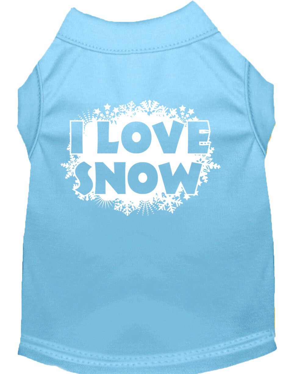 The 'I Love Snow' print adds a fun and festive touch to your dog's wardrobe. It's perfect for holiday parties, family gatherings, or simply taking a stroll in the winter wonderland. Your dog will be the center of attention, and you'll love capturing those adorable moments with them in their stylish shirt. This shirt is not just a piece of clothing; it's a way to express your dog's personality and love for the holiday season.
