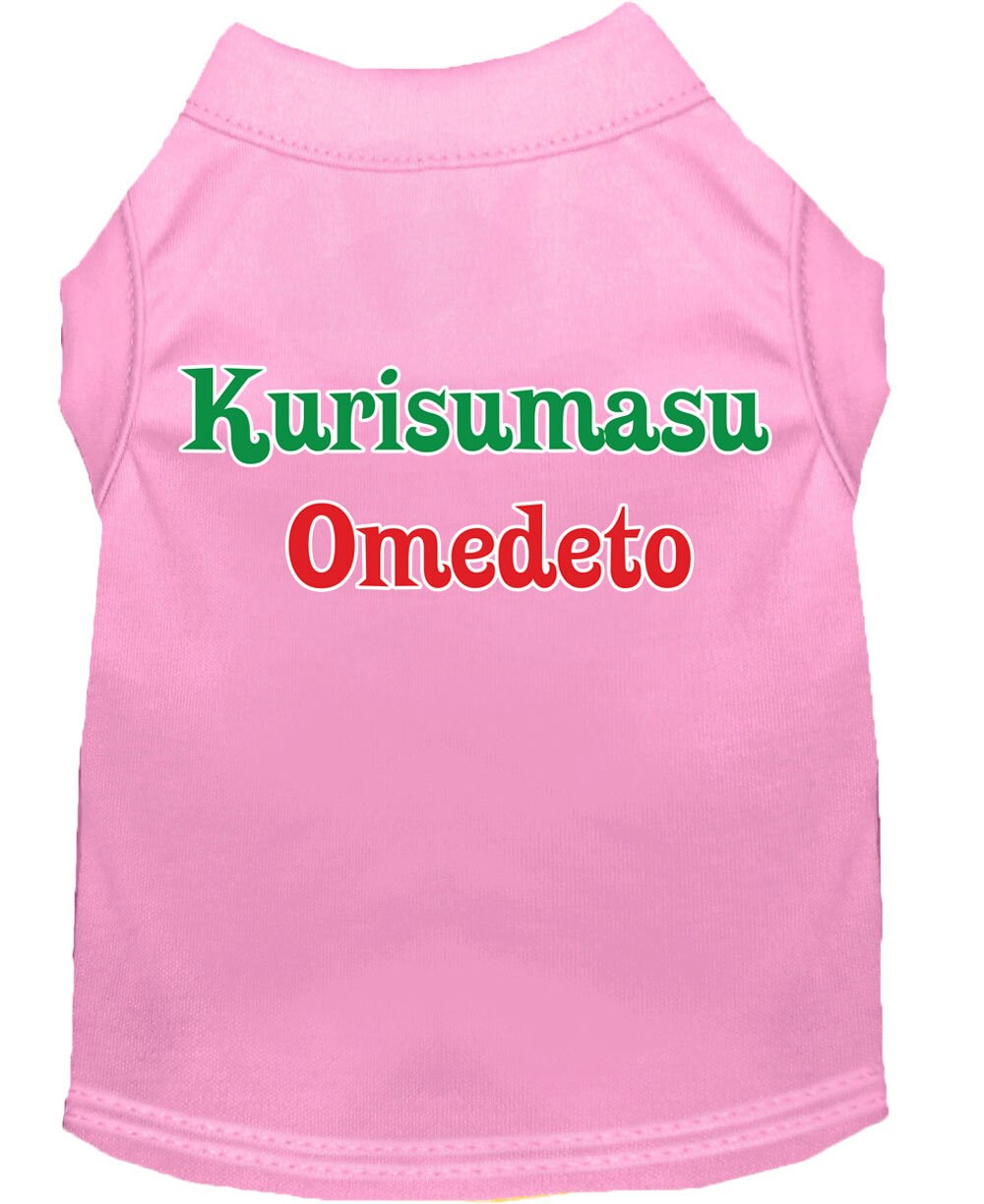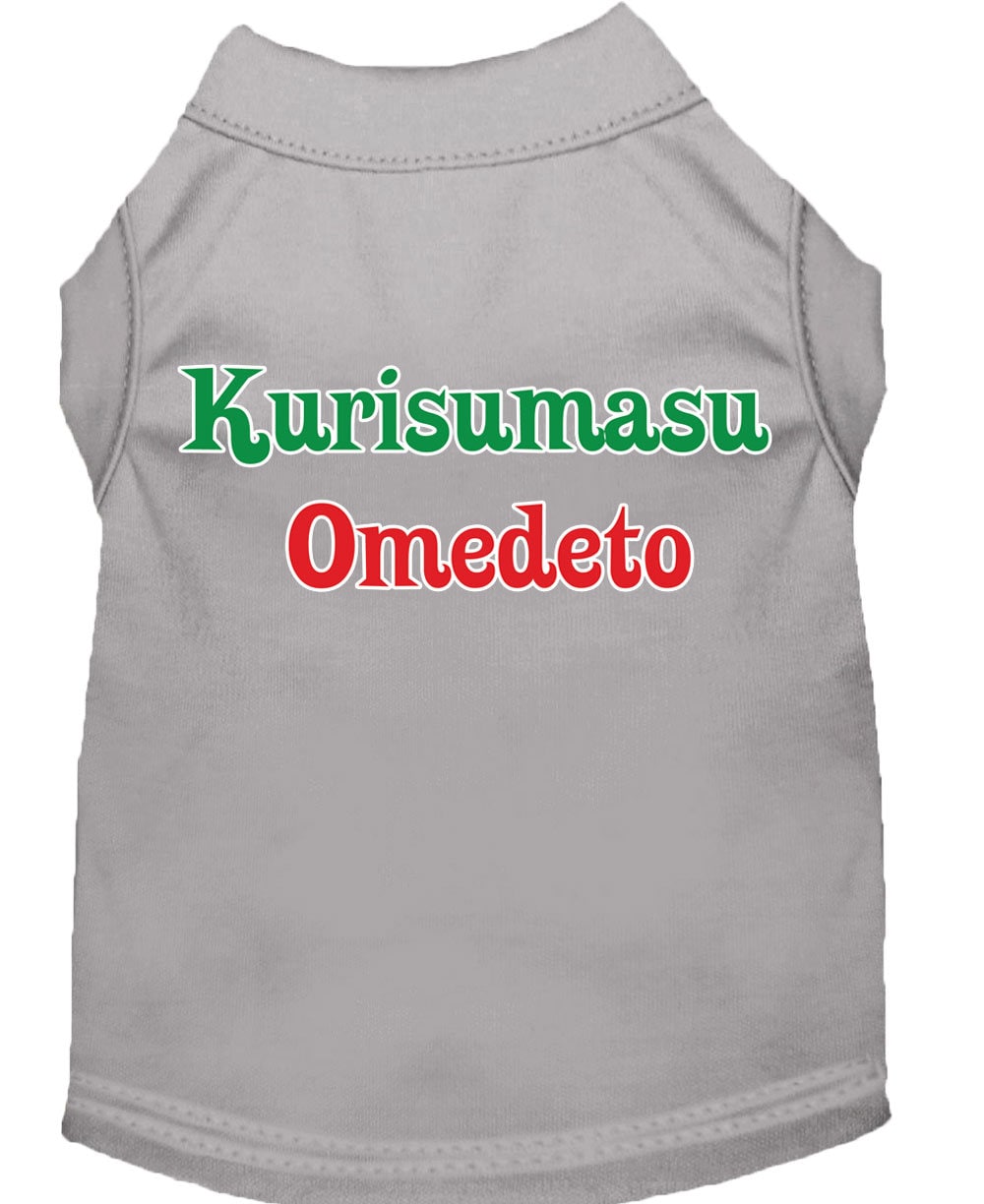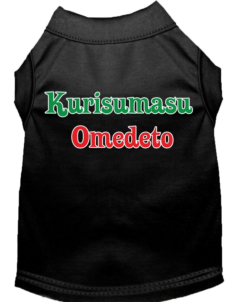 Our Christmas dog shirt is crafted with care, featuring a soft and comfy fabric that your pet will love. The unique screenprint design, 'Kurisumasu Omedeto', adds a touch of festive cheer, making it a perfect outfit for holiday gatherings, family photos, or simply lounging around at home. The double-stitched seams provide added durability, ensuring that the shirt withstands the playful antics of your pet.