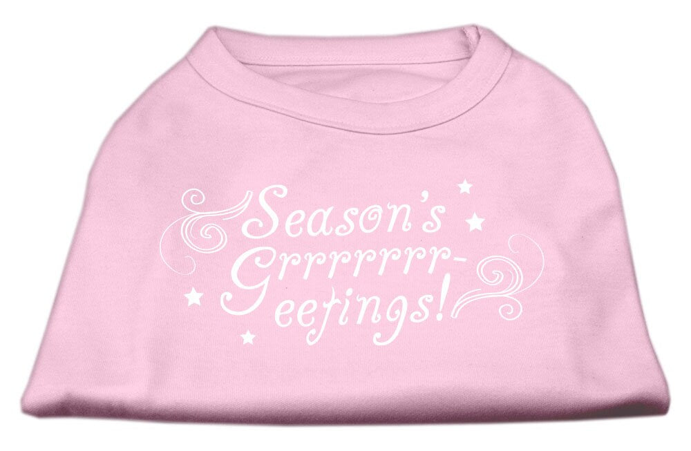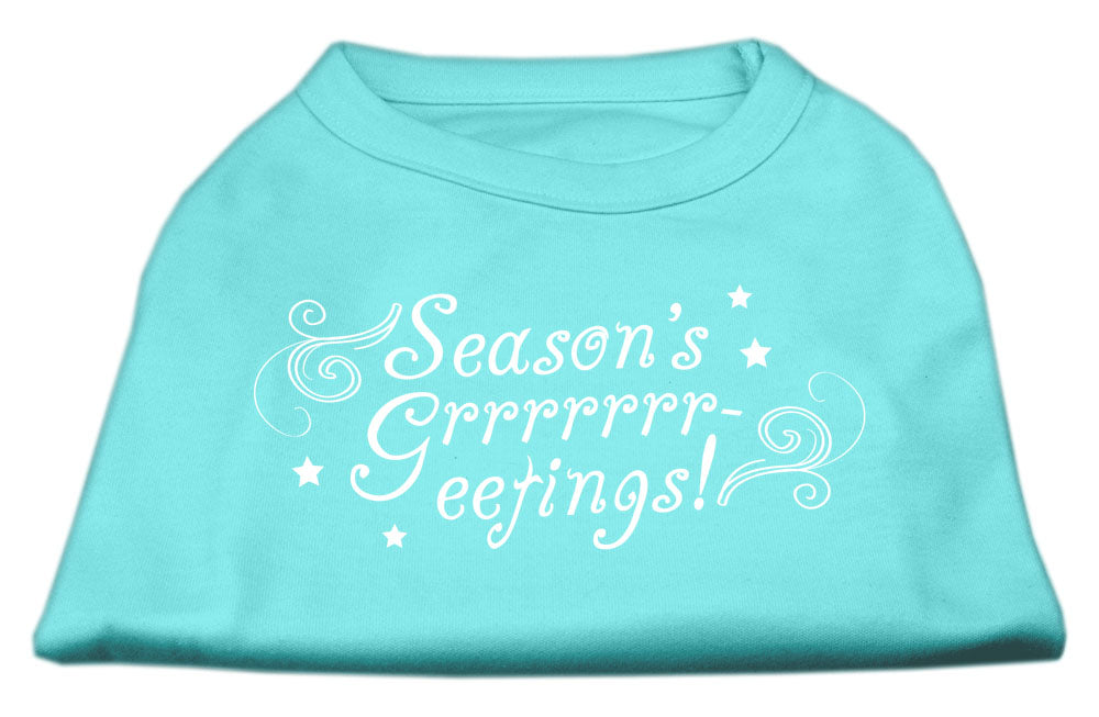 The 'Season's Greetings' print adds a cheerful touch to your dog's wardrobe, making it perfect for holiday photos, parties, and gatherings. Your dog will be the center of attention as they strut their stuff in this festive shirt. The vibrant colors and playful design are sure to bring smiles to everyone around, making it a must-have for the holiday season.