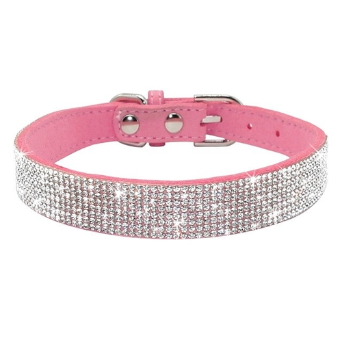 Type: Dogs Collar Type: Basic Collars Season: All Seasons Pattern: Solid Feature: Jeweled Type: Collars Material: Soft Suede Leather Color: Pink, Rose, Black, Purple, Blue Accessory: Rhinestone Suit For: Small Medium Dogs Cats