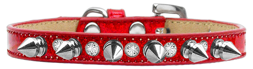 The collar features a 1/2" wide glitter finish that sparkles in the sunlight, ensuring your pet stands out from the crowd. The alternating clear crystals and silver spikes add a touch of bling and attitude, making it an eye-catching accessory for your furry friend. Each collar is handmade with care, ensuring that every detail is perfect.