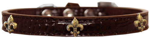 Introducing the exquisite Dog, Puppy & Pet Designer Croc Widget Collar in the stunning "Bronze Fleur De Lis" design. This collar is not just an accessory; it’s a statement piece that adds a touch of sophistication and elegance to your furry friend's wardrobe. Crafted with care, this collar is perfect for pet owners who want their dogs to stand out in style.