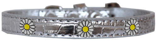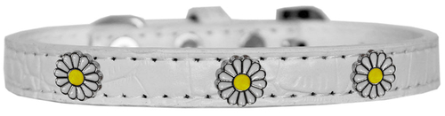 A stylish white daisies designer faux croc collar for dogs, featuring decorative widgets and a luxurious texture.
