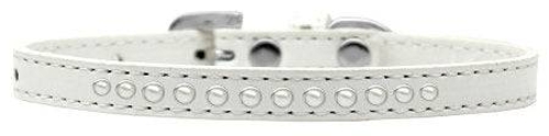 The One Row Pearl Rimsets collar is not just about looks; it is also designed with functionality in mind. The collar is 3/8" wide, making it a perfect fit for small to medium-sized dogs and puppies. The soft faux leather material ensures that your pet remains comfortable while wearing it, preventing any irritation or discomfort during daily activities.