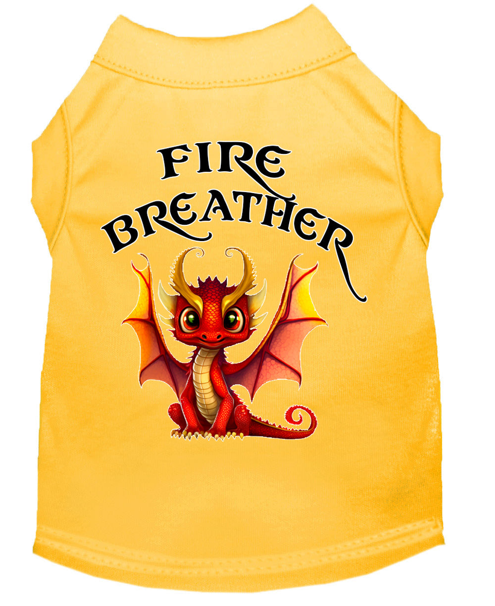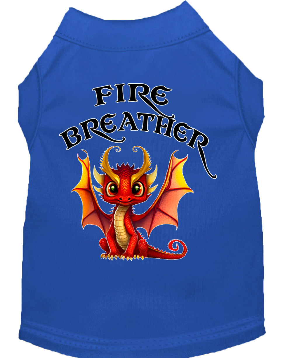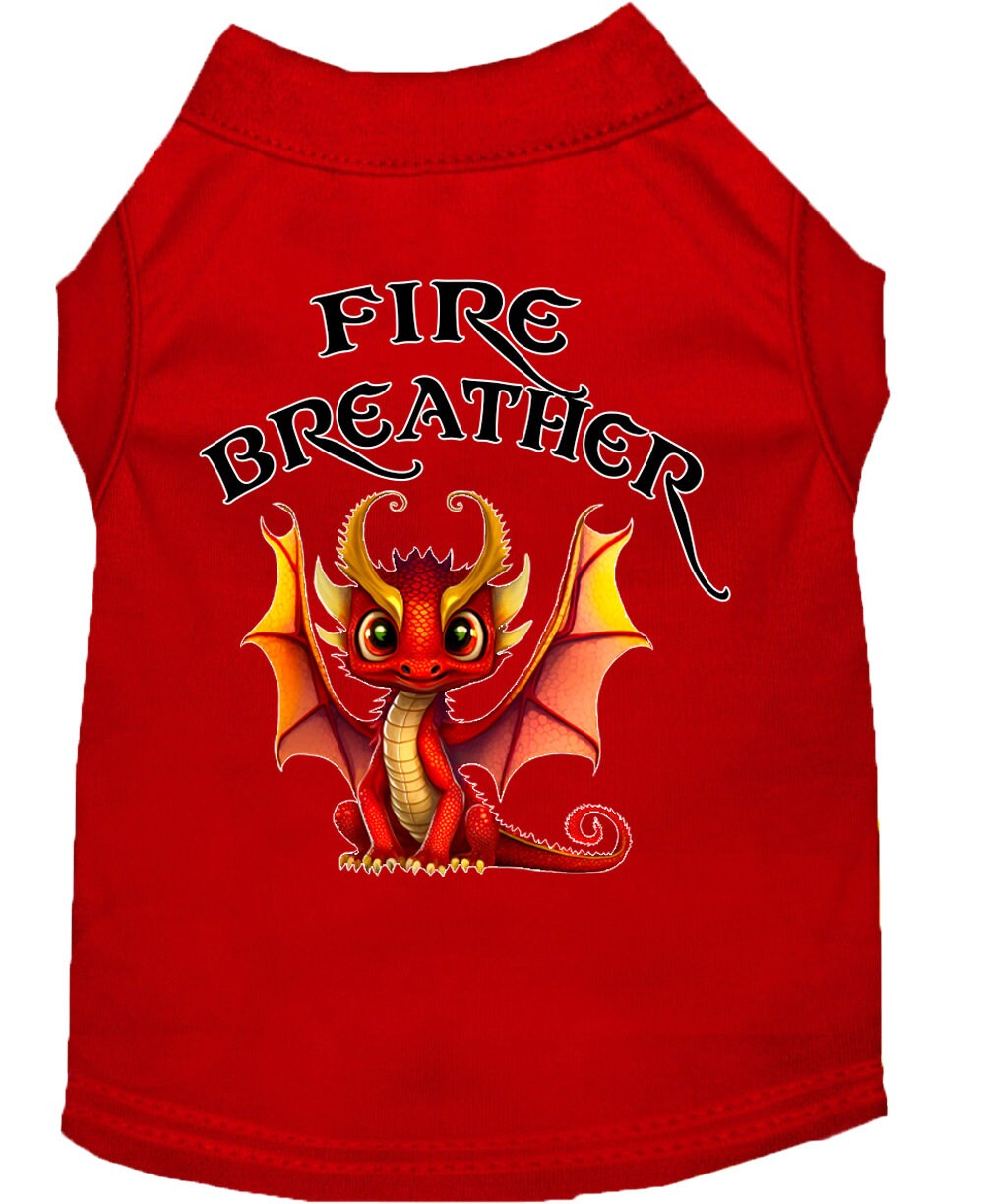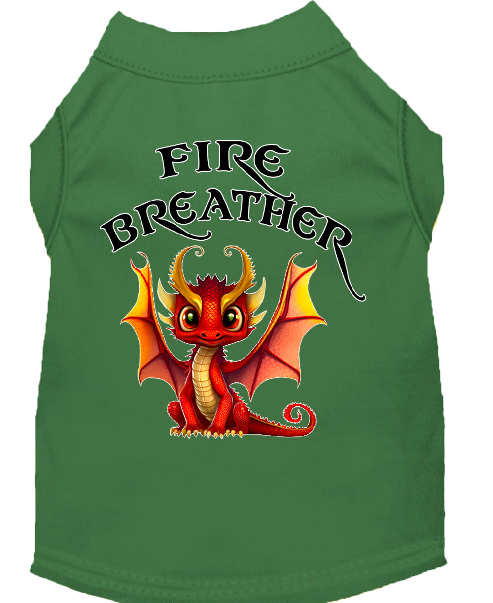 A soft and durable dog shirt featuring a vibrant Fire Breather Dragon design, suitable for pets weighing 20-115 pounds.