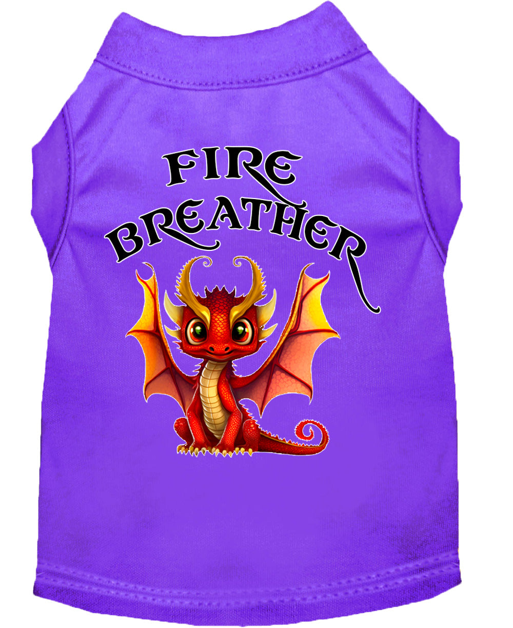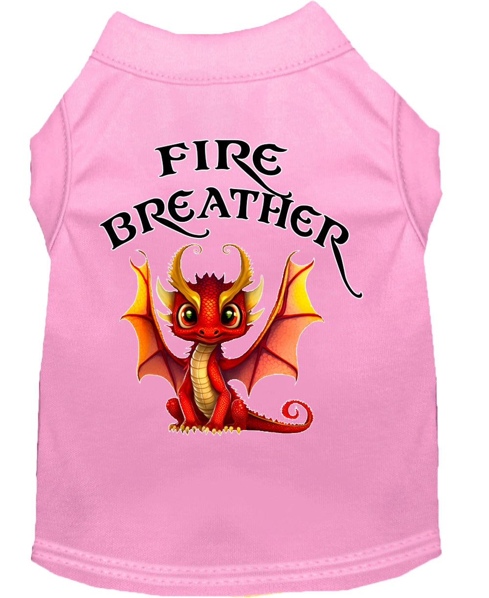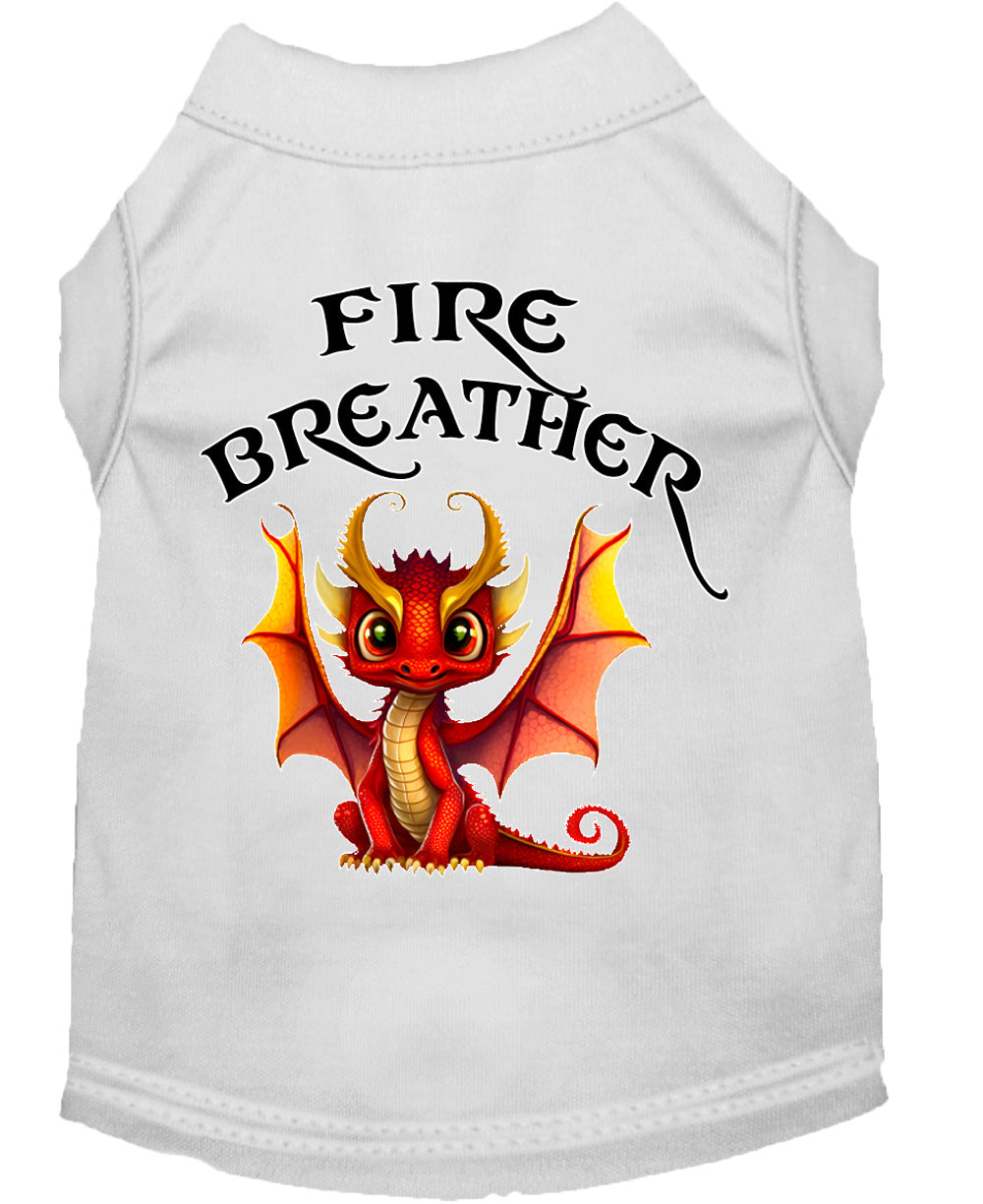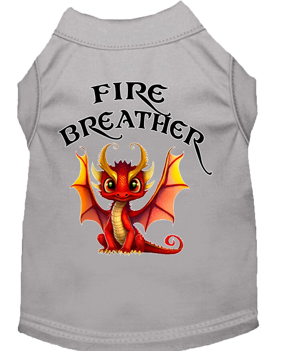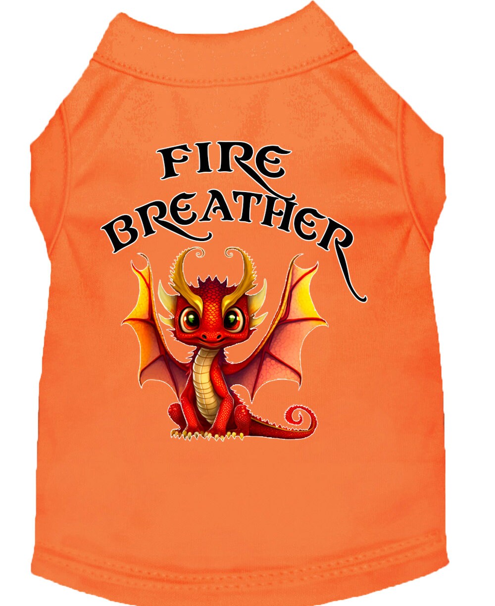 A soft and durable dog shirt featuring a vibrant Fire Breather Dragon design, suitable for pets weighing 20-115 pounds.