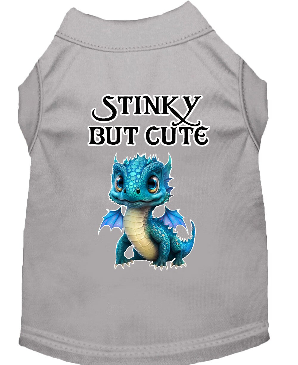 The 'Stinky But Cute Dragon' print adds a fun and whimsical touch to your pet's wardrobe. This unique design is sure to turn heads and spark conversations during walks in the park or visits to the doggy daycare. Your pet will be the talk of the town with this eye-catching shirt that showcases their personality.