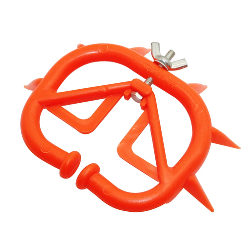 The Farm Animal Red Plastic Calf Weaner is an essential tool for cattle farmers looking to effectively wean calves. This innovative device is designed to be worn on the calf's nose, preventing them from nursing from their mothers. The weaner features puncturing thorns that discourage the calf from feeding, making the weaning process smoother and more efficient.