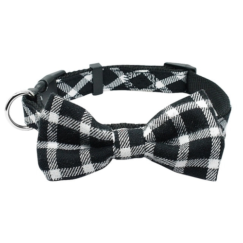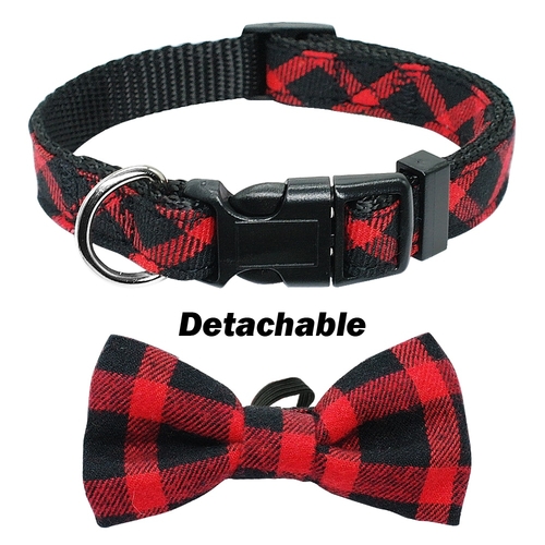 Type: Collars Collar Type: Basic Collars Pattern: Plaid Material: Nylon Season: All Seasons Type: Dogs Feature: Adjustable Type: Dog collar Acessorioes: Bowknot Suit For: Small Medium Dogs Cats