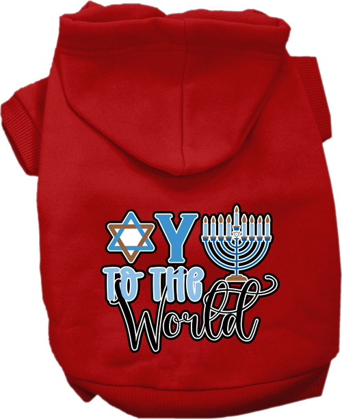 Celebrate Hanukkah in style with our Hanukkah Pet Hoodie, designed specifically for dogs and cats. This adorable hoodie features the festive phrase 'Oy To The World', making it a perfect addition to your pet's wardrobe during the holiday season. Crafted from a comfortable blend of 65% cotton and 35% polyester, this hoodie ensures that your furry friend stays warm and cozy while looking fashionable.