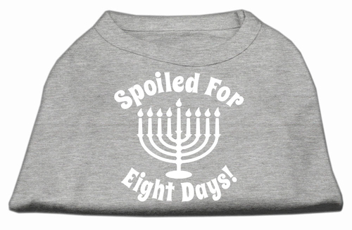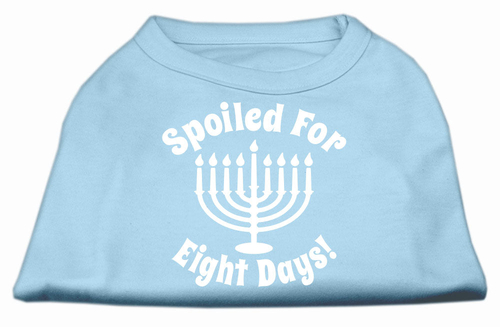 The 'Spoiled for Eight Days' design is a fun and festive way to celebrate Hanukkah with your pet. This unique shirt allows your dog or cat to join in the holiday spirit, making it a perfect choice for family photos, parties, or simply lounging at home. The vibrant print is sure to catch the eye and spark conversations among friends and family.