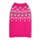 Modern sweater with geometric round yoke design. 100% acrylic. Pink.