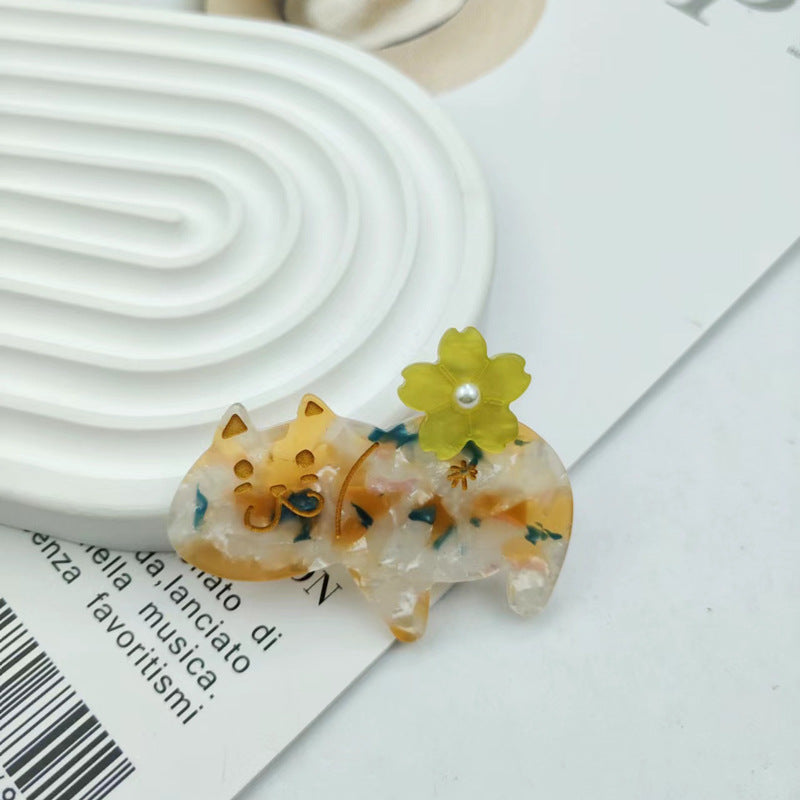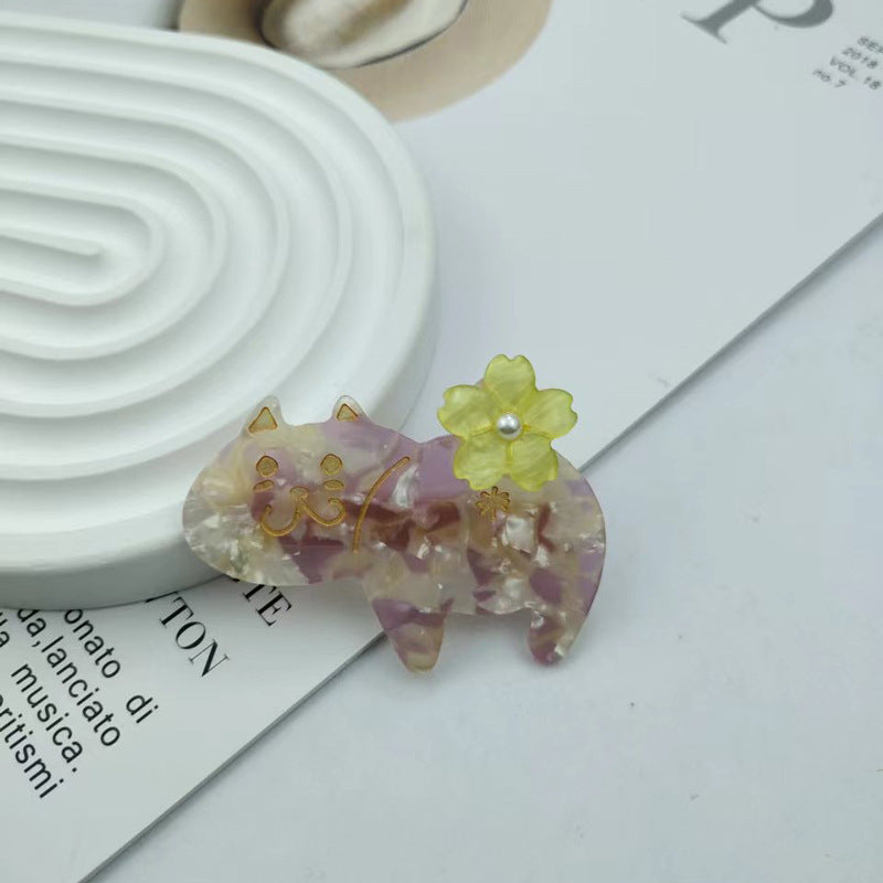 This floral cat hair clip is versatile enough to be worn on various occasions, whether you're dressing up for a special event or simply adding a playful touch to your everyday look. The alligator hair clip design ensures a secure hold, keeping your hair in place while you go about your day. Pair it with casual outfits or use it to elevate your more formal attire; this hair clip is sure to turn heads and spark conversations.