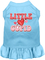 A medium to large pet wearing a cute screen printed dress with ruffles, featuring the design 'Little Cupid'.