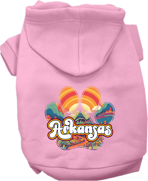 Introducing our Pet Dog & Cat Screen Printed Hoodie, designed specifically for medium to large pets. This stylish hoodie features a unique "Arkansas Groovy Summit" design that will make your furry friend stand out during walks or playtime. Made from a comfortable blend of 65% cotton and 35% polyester, this hoodie ensures that your pet stays warm and cozy while looking fashionable.