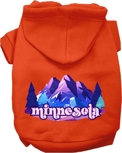 A cozy pet hoodie featuring the Minnesota Alpine Pawscape design, suitable for small to medium dogs and cats, showcasing its soft fabric and durable stitching.