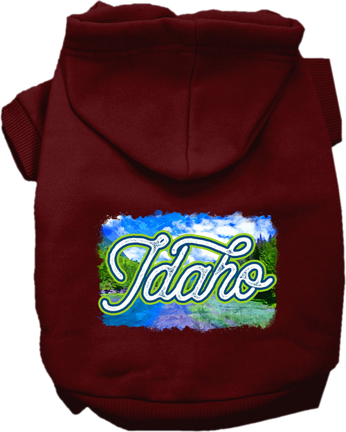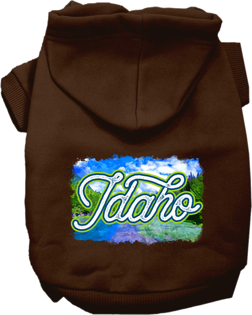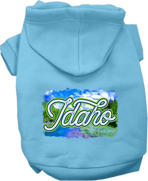 Introducing the Pet Dog & Cat Screen Printed Hoodie for Small to Medium Pets, featuring the charming "Idaho Summer" design. This hoodie is perfect for pet owners looking to keep their furry friends warm and stylish during cooler days. Made from a high-quality blend of 65% cotton and 35% polyester, this hoodie offers the ideal combination of comfort and durability, ensuring that your pet stays cozy while looking fashionable.