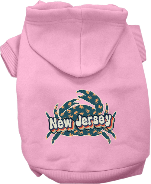 Introducing the Pet Dog & Cat Screen Printed Hoodie for Small to Medium Pets, featuring the charming "New Jersey Retro Crabs" design. This hoodie is perfect for pet owners looking to keep their furry friends warm and stylish during chilly days. Made from a comfortable blend of 65% cotton and 35% polyester, this hoodie provides the ideal combination of softness and durability, ensuring your pet stays cozy while looking fashionable.