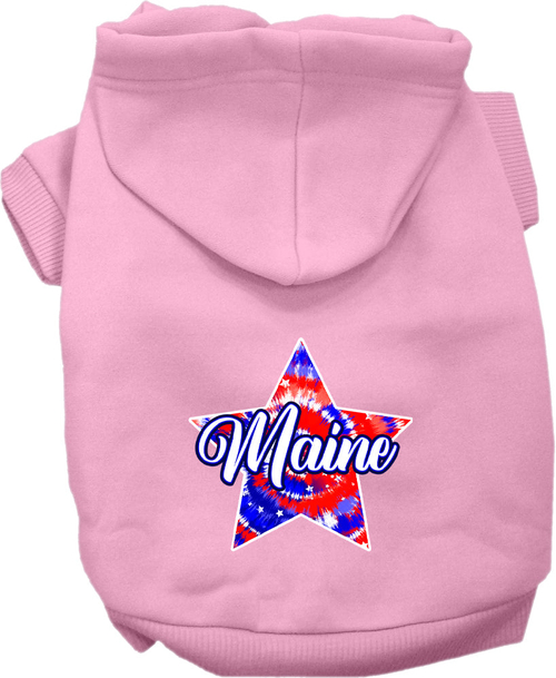 The "Maine Patriotic Tie Dye" design adds a fun and unique touch to your pet's wardrobe. This eye-catching pattern is perfect for pet owners who want their pets to stand out in a crowd. Whether you're attending a pet-friendly event, going for a walk, or simply enjoying a day at home, this hoodie will make your pet the center of attention.