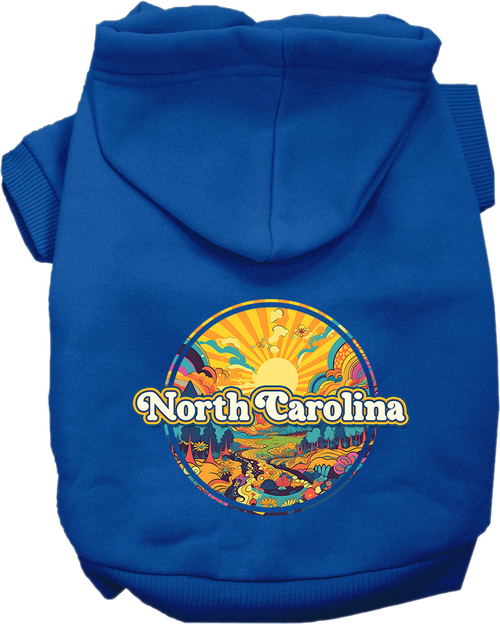 Introducing our Pet Dog & Cat Screen Printed Hoodie for Small to Medium Pets, featuring the vibrant 'North Carolina Groovy Summit' design. This hoodie is perfect for pet owners who want to keep their furry friends warm and stylish during walks or playtime. Made from a comfortable blend of 65% cotton and 35% polyester, this hoodie ensures that your pet stays cozy while also being durable enough for everyday wear.