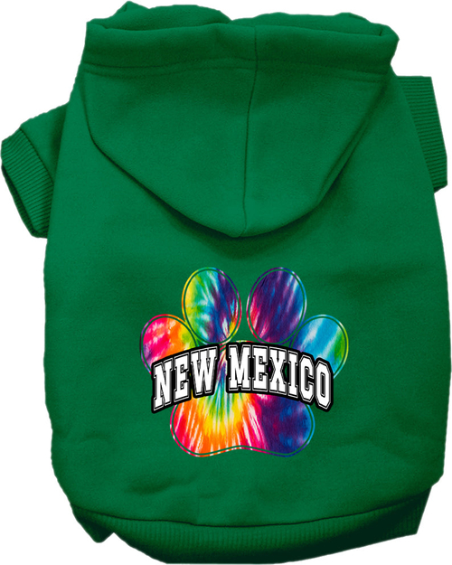 A colorful New Mexico Bright Tie Dye hoodie for small to medium dogs and cats, showcasing its soft fabric and stylish design.