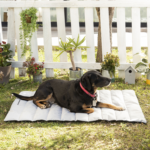 This original cushioned bed is modern, lightweight and robust, ideal for dogs and other pets. In addition, its folding design, which also enables it to be rolled up, makes it easier transport and store. It can be used indoors and outdoors. It is easy to clean as it is machien washable.