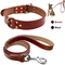 Real Leather Pet Dog Collar Leash Set For Medium