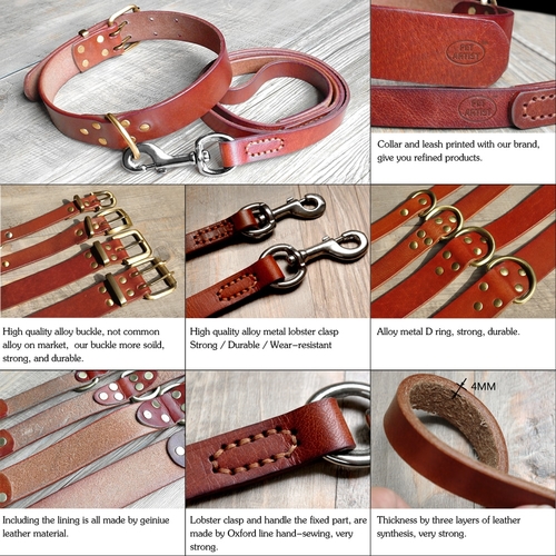 Dropship Real Leather Pet Dog Collar Leash Set For Medium
