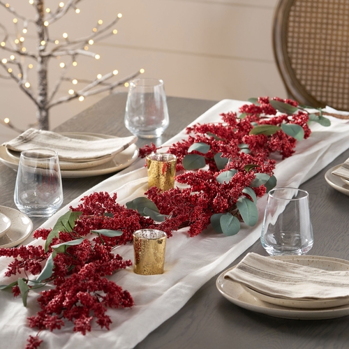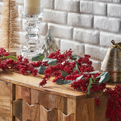 Featuring eucalyptus leaves intertwined into clusters of berries, this accessory brings a festive touch of nature to your home.