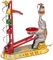The balls are lifted to the tower top when you wind-up this one, the elephant catches them in his basket and sends them back to start over.