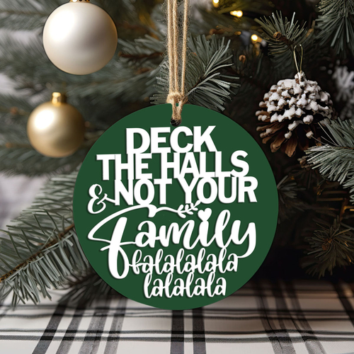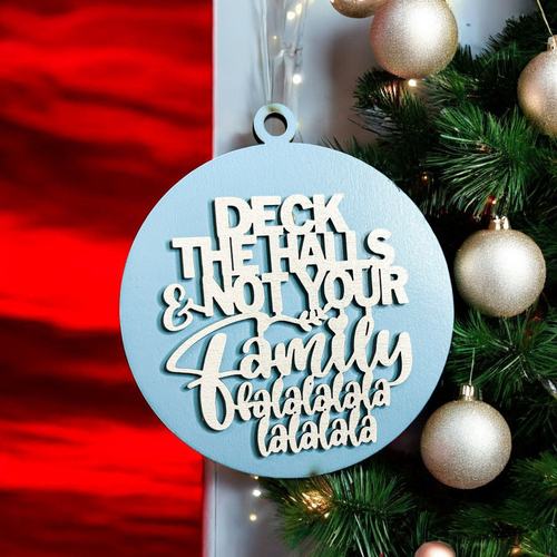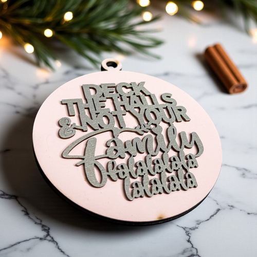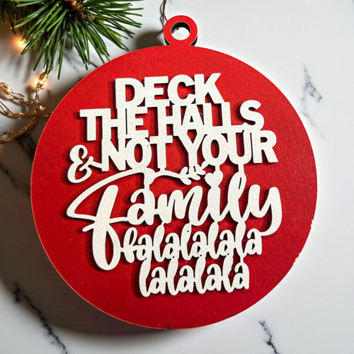🎄 Bring some holiday realness to your decor with our "Deck the Halls (and Not Your Family)" Wooden Ornament! 🎄✨ This unique ornament is designed to add a touch of humor and charm to your festive celebrations. The holidays can be a little stressful, but this cheeky reminder—complete with a full "fa la la la la la la la"—will help you keep your cool (and your sanity) during the bustling season.