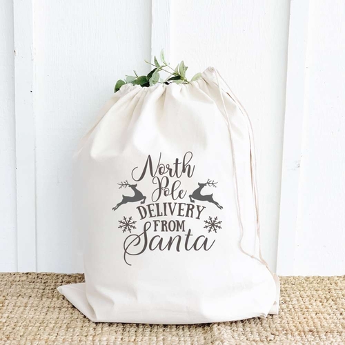 The Santa Sack comes equipped with a cotton webbing handle, making it easy to carry, whether you're heading to a family gathering or simply moving it around your home. The drawstring closure adds an extra layer of convenience, allowing you to securely close the sack and keep the contents safe until it's time to unwrap the gifts.