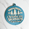 Each ornament is handmade and hand-painted, ensuring that every piece is unique. The minor imperfections that may occur are a natural characteristic of handmade products, adding to their charm and authenticity. The ornament measures approximately 3.75 inches in radius and 4.25 inches from the bottom to the top circle, with a thickness of 3/16th inch, making it a perfect size for various display options.