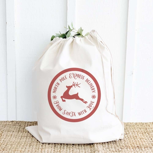 In addition to its festive appeal, the From Santa with Love Santa Sack is an eco-friendly choice. Made from natural materials and printed with water-based inks, it aligns with sustainable practices that are increasingly important to consumers today. By choosing this Santa Sack, you are making a conscious decision to reduce waste and promote environmentally friendly products during the holiday season.