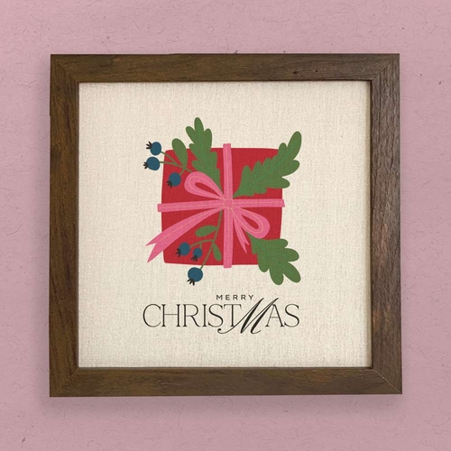 Bring the spirit of the holidays into your home with our Merry Christmas - Framed Sign. This charming piece of decor is designed to enhance your festive atmosphere, making it a perfect addition to your Christmas decorations. Measuring 9" x 9" x 1.5", this sign is compact yet eye-catching, ideal for any shelf, mantle, or wall space.