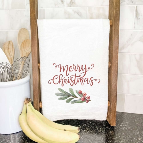 Our Merry Christmas Sprig tea towel is designed for convenience. It is machine washable and dryer safe, allowing you to keep it clean and fresh with minimal effort. Simply toss it in the washing machine with your regular laundry, and it will come out looking as good as new. This easy care feature makes it a practical choice for busy households during the holiday season.