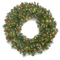 The Crestwood Spruce is a sparkling mixed branch wreath featuring bristle tips and trimmed with pine cones, red berries and glitter. It is pre-strung with 70 clear lights that remain lit even if a bulb burns out. This wreath can be displayed on doors, walls and windows in indoor or covered outdoor locations.