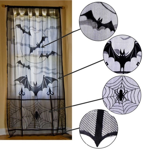 Dropship Halloween Black Lace Spiderweb Window Door Curtain