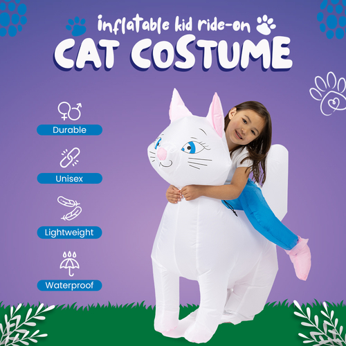 Crafted for comfort and playfulness, our Inflatable Kid Ride-On Cat Costume is easy to wear and guaranteed to turn heads. The lightweight design ensures that your child can move freely, while the unisex style makes it suitable for both boys and girls.
