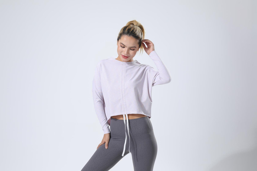 One of the standout features of the HauteD DK LS Scrunch Sweatshirt is its unique scrunch design. The drawstring running down the center front allows you to customize the fit and airflow, making it ideal for fluctuating temperatures. Whether you're warming up or cooling down, you can easily adjust the sweatshirt to suit your needs. The luxurious fabric also shimmers beautifully in the light, ensuring you stand out in any setting.