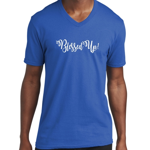 Introducing the Blessed Up Men's Graphic V-neck T-shirt, a perfect blend of comfort and inspiration. This stylish t-shirt features a motivational Christian quote that serves as a daily reminder of positivity and faith. Made from soft, preshrunk cotton, this shirt is designed to retain its softness and size even after multiple washes, ensuring that you can enjoy its comfort for years to come. The classic fit of this t-shirt makes it suitable for various body types, fitting true to size for a flattering look. Whether you're heading to church, running errands, or just lounging at home, this t-shirt is versatile enough to be worn on any occasion.