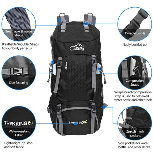 Dropship 60L Waterproof Foldable Backpack Camping Bag with Rain Cover