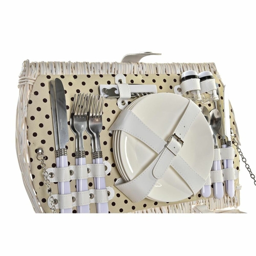 Basket DKD Home Decor wicker Picnic Beige Polyester White (44 x 28 x 19 cm) at the best price.