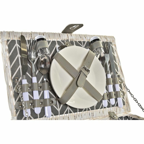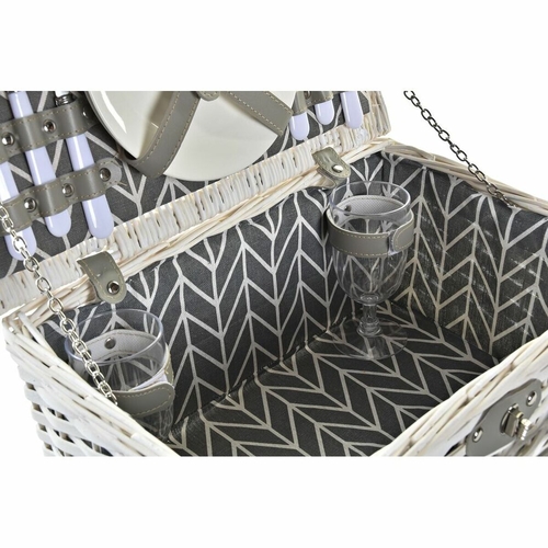 Basket DKD Home Decor wicker Picnic Ceramic Grey Polyester Stainless steel White (38,5 x 26 x 19 cm) at the best price.