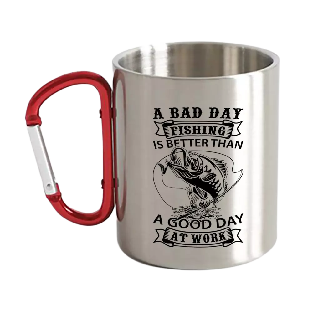 In summary, the A Bad Day At Fishing 12oz Carabiner Mug is a durable, stylish, and functional drinkware option for anyone who loves spending time outdoors. With its high-quality materials, easy-to-clean design, and eye-catching print, this mug is sure to become a favorite for years to come.