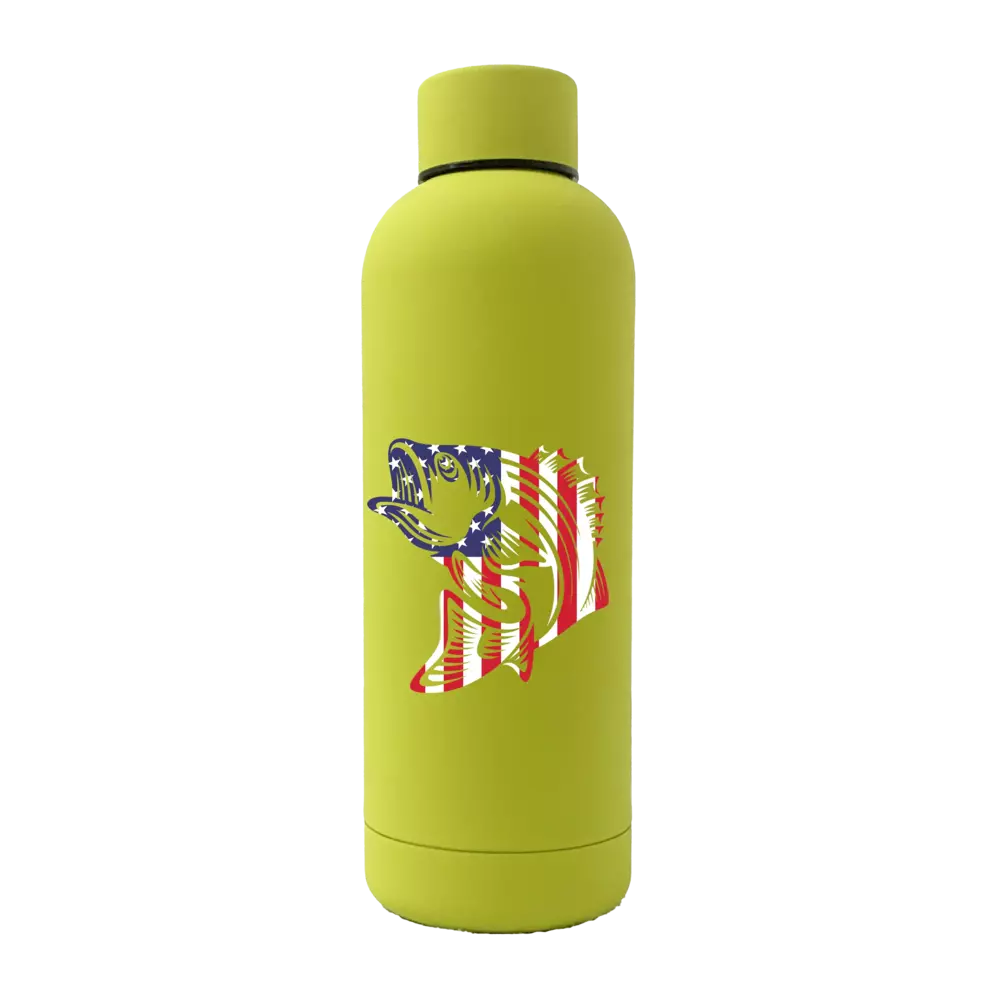 In summary, the American Flag Fish 17oz Stainless Rubberized Water Bottle is a must-have for anyone who values style, functionality, and sustainability. With its durable construction, leakproof cap, and eye-catching design, this water bottle is perfect for all your hydration needs. Stay hydrated and make a statement with this exceptional water bottle!